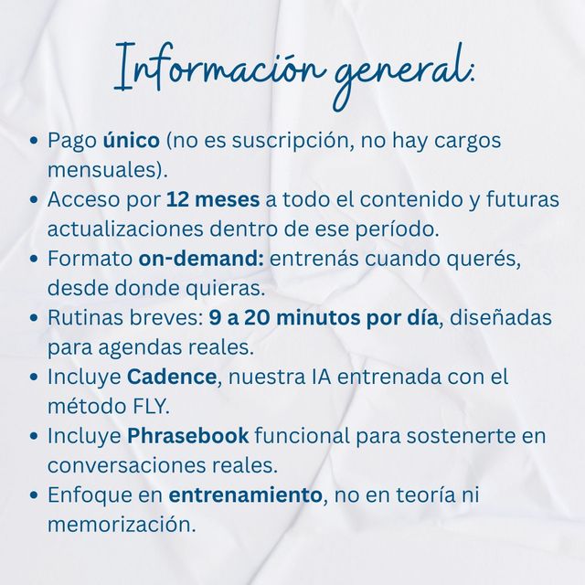 A través de entrenamientos breves y guiados, trabajás cada día sobre tres niveles: cómo pensás, cómo hablás y cómo te percibís a vos mismo cuando usás el inglés.